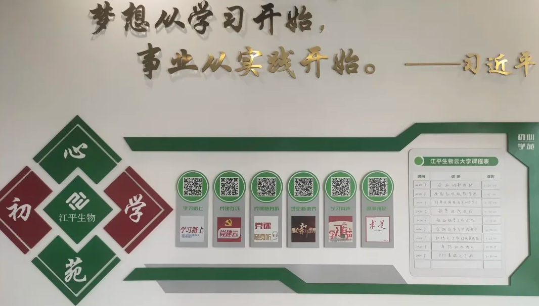 黨徽墻是江平生物利用自身先進的科學技術以及高品質的生物基質產品打造的植物墻,紅綠相間,蘊含了江平生物不忘生態(tài)環(huán)保的初心,也體現了黨建工作與企業(yè)文化相融合的蘊意。
