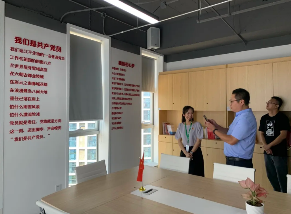 盧副部長一行十分認可我司在土壤改良及生態(tài)修復上取得的成效,并對我司的黨建工作給予了肯定,特別是對黨徽墻、初心學苑、黨建室給予了高度贊揚:不僅創(chuàng)意十足,而且融入了江平生物自身的特色,具有很好的借鑒意義。