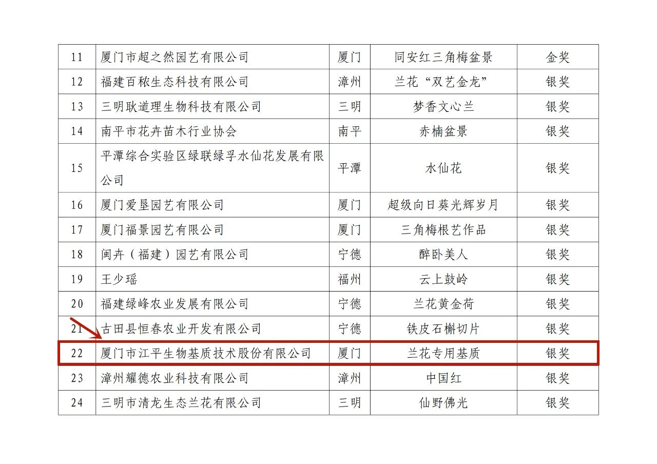 其中,我司蘭花專用基質(zhì)、多肉植物栽培基質(zhì)分別榮獲花卉類銀獎、銅獎!