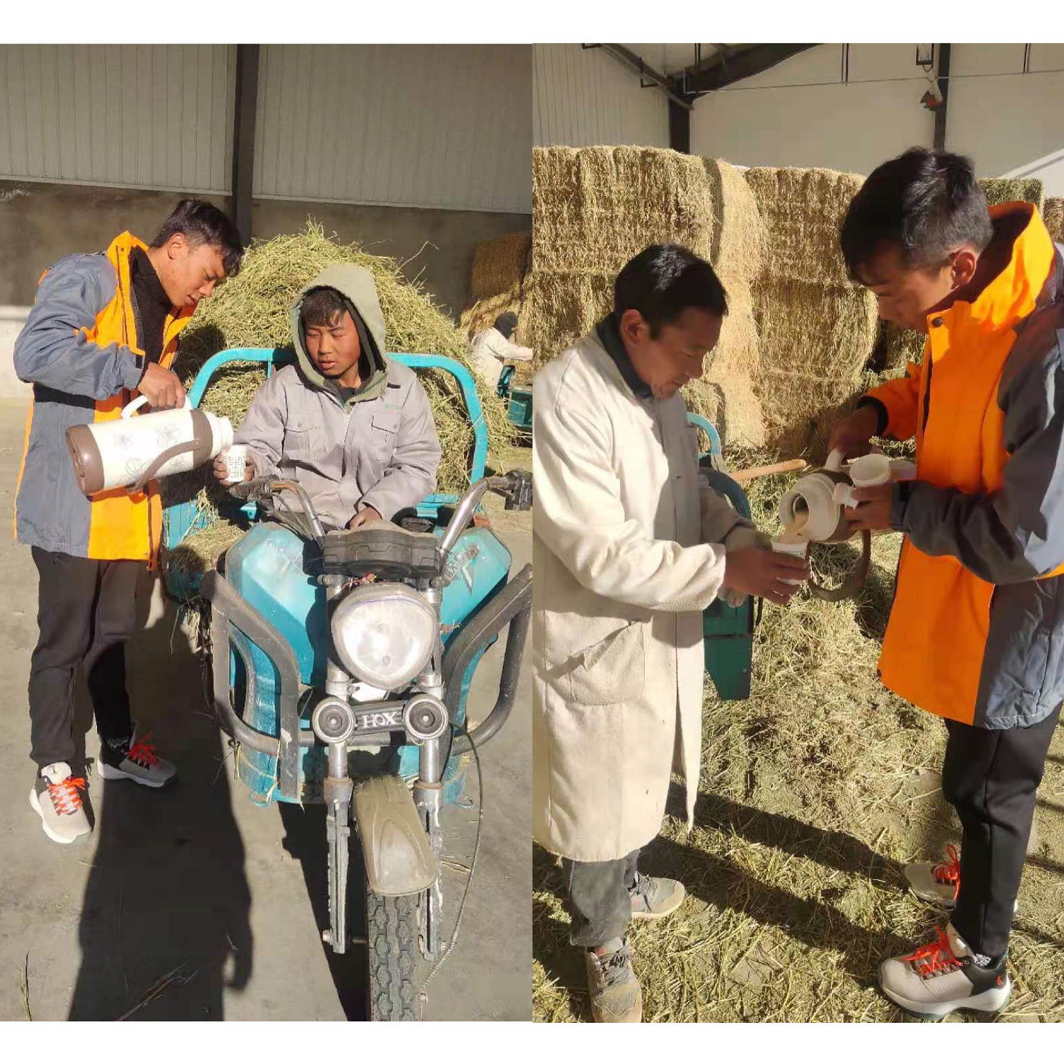 在忙碌的過(guò)程中,節(jié)日的氣氛也逐漸開(kāi)始濃厚。經(jīng)過(guò)了一上午的清掃后,大家圍在一起稍作休息,喝著藏式風(fēng)情的酥油茶。同時(shí),我們也不忘給奶牛場(chǎng)的臨時(shí)工作人員倒上一杯茶,讓他們也感受到了節(jié)日的溫暖。