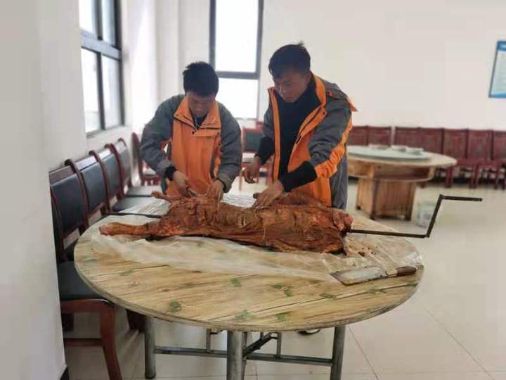下午,大家又開(kāi)始忙活起來(lái):林主管負(fù)責(zé)給羊剝皮,其他員工負(fù)責(zé)準(zhǔn)備食材,每個(gè)人都大顯身手,整個(gè)房間香氣四溢,一道道熱氣騰騰的菜肴被端上桌子,讓人望眼欲穿,大家都在期待舉起筷子的那個(gè)瞬間。