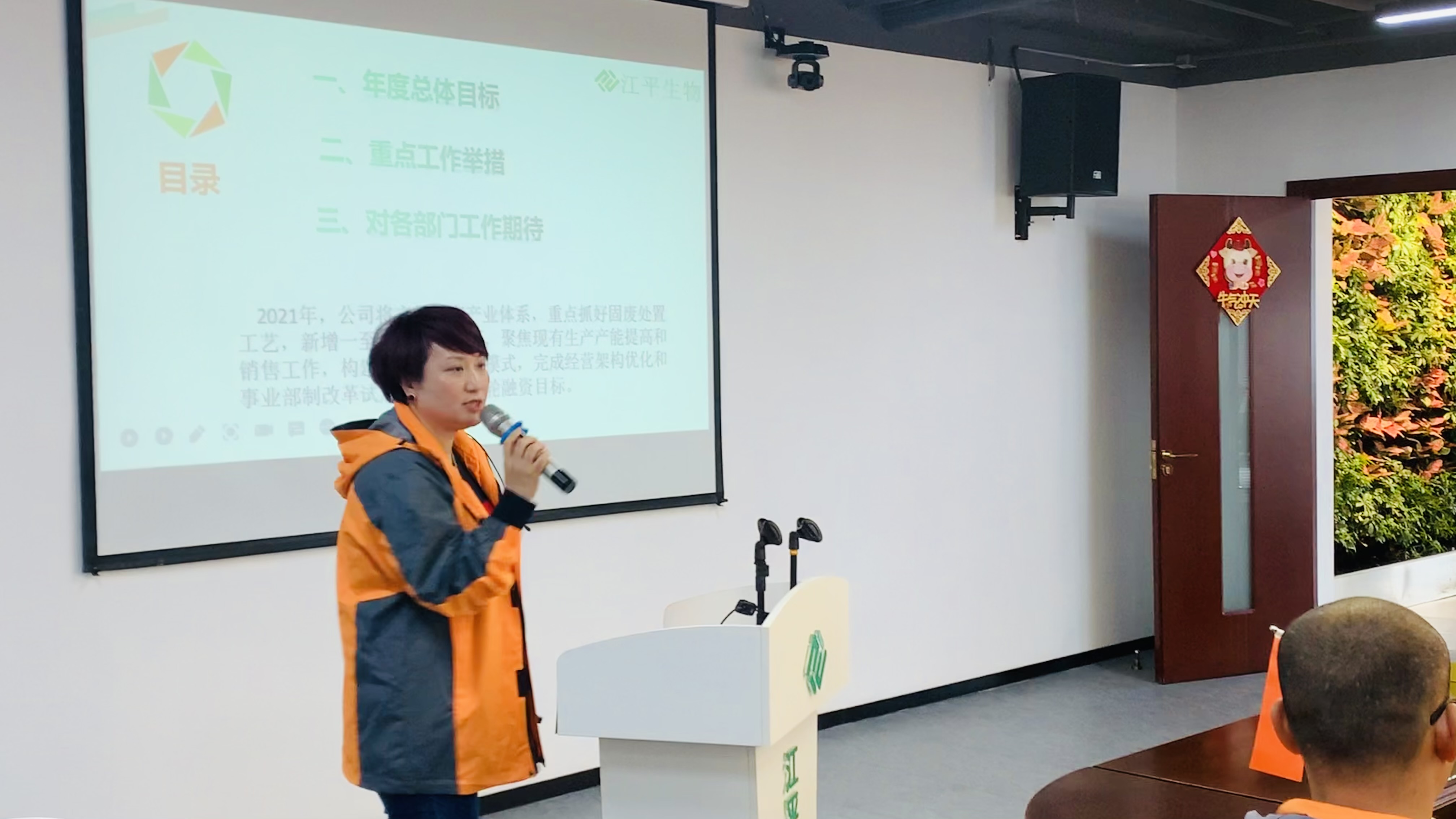 會(huì)上,夏江平董事長(zhǎng)總結(jié)公司2020年主要工作成效并安排部署公司2021年生產(chǎn)經(jīng)營(yíng)工作,重點(diǎn)講述公司年度總體目標(biāo)與重點(diǎn)工作舉措,并激情表示對(duì)公司各個(gè)部門未來(lái)工作的期待。