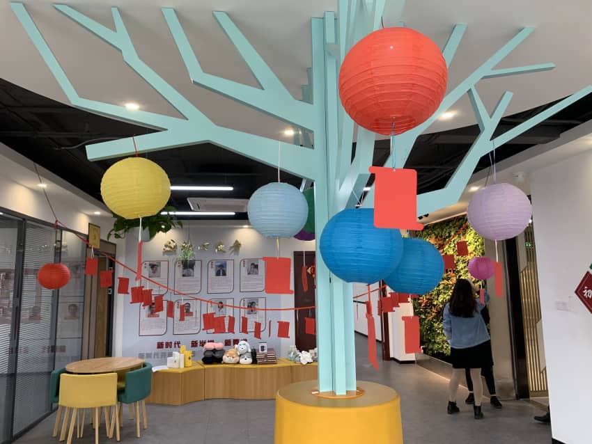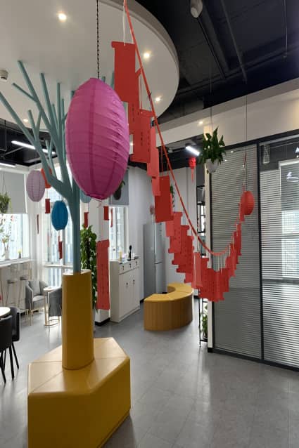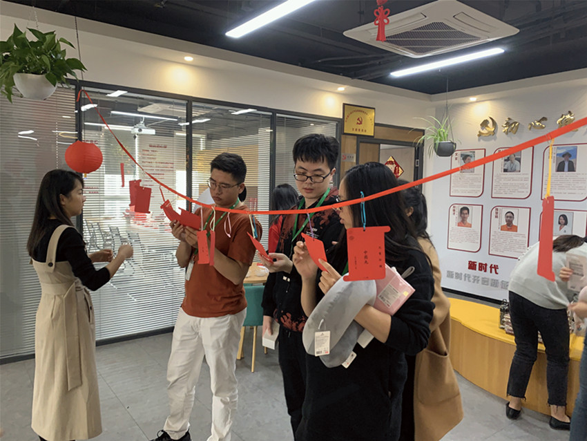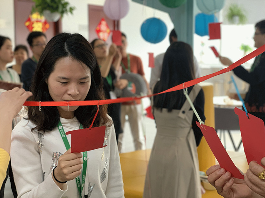 今天的休息區(qū)充滿歡聲笑語,熱鬧非凡。燈籠+燈謎絕對是元宵節(jié)的氣氛組了,猜謎的歡笑聲、討論聲時不時傳入耳中,大家穿梭在燈謎區(qū)與禮品區(qū),節(jié)日氛圍濃。