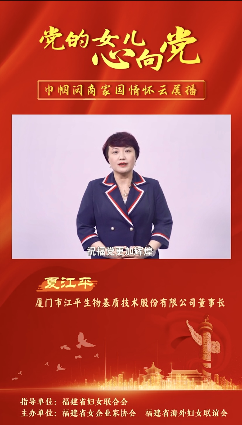 近日,由福建省婦女聯(lián)合會(huì)指導(dǎo),福建省女企業(yè)家協(xié)會(huì)、福建省海外婦女聯(lián)誼會(huì)共同主辦的“黨的女兒心向黨——巾幗閩商家國(guó)情懷云展播”活動(dòng)正火熱開展,巾幗閩商線上發(fā)聲,獻(xiàn)禮建黨百年。讓我們一起來聽聽“黨的女兒”夏江平的心聲吧~