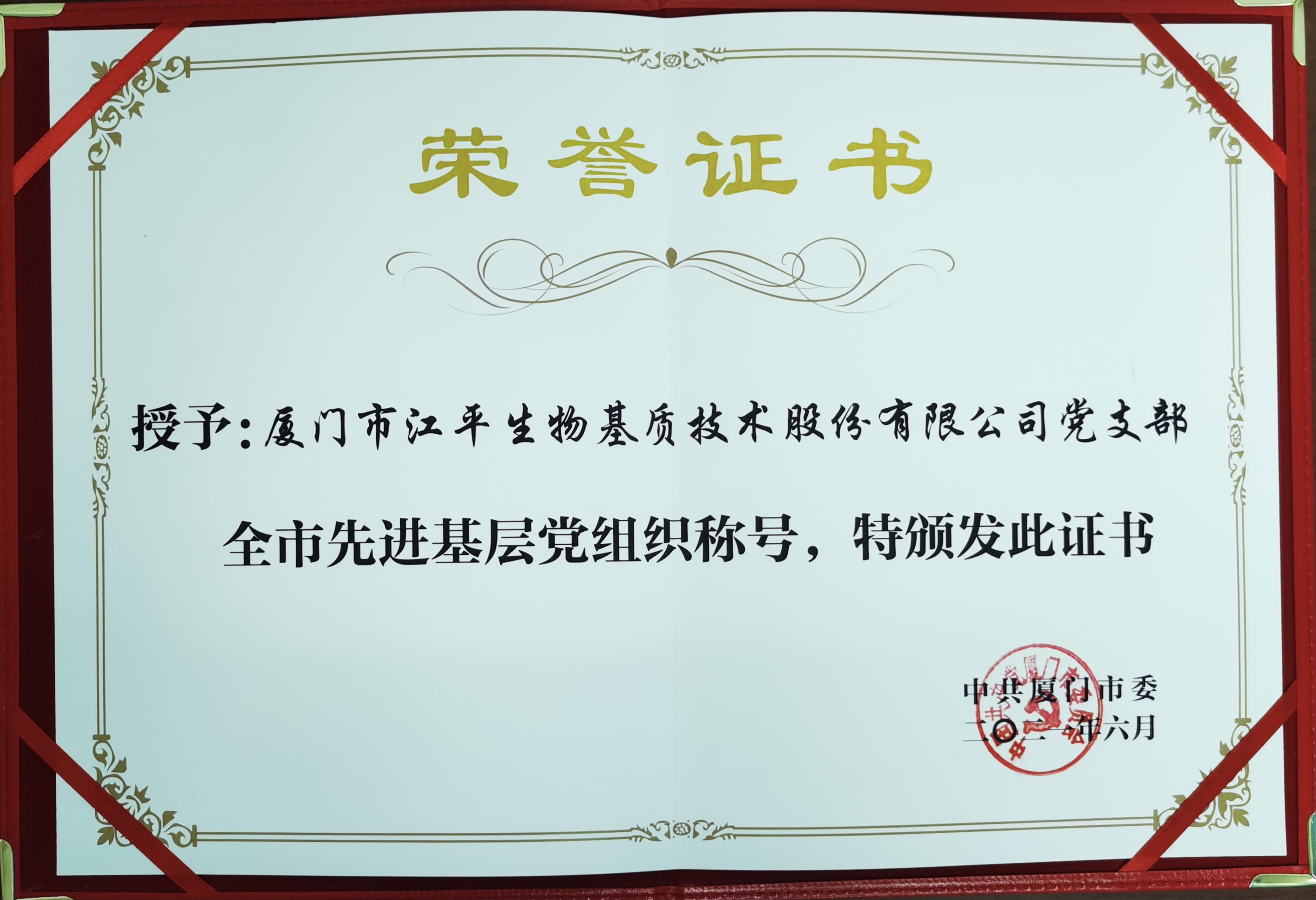 6月30日,全市“兩優(yōu)一先”表彰大會在廈門人民會堂主會場召開,隆重表彰廈門市優(yōu)秀共產(chǎn)黨員、優(yōu)秀黨務(wù)工作者和先進(jìn)基層黨組織。熱烈祝賀廈門市江平生物基質(zhì)技術(shù)股份有限公司黨支部榮獲“廈門市先進(jìn)基層黨組織”稱號!