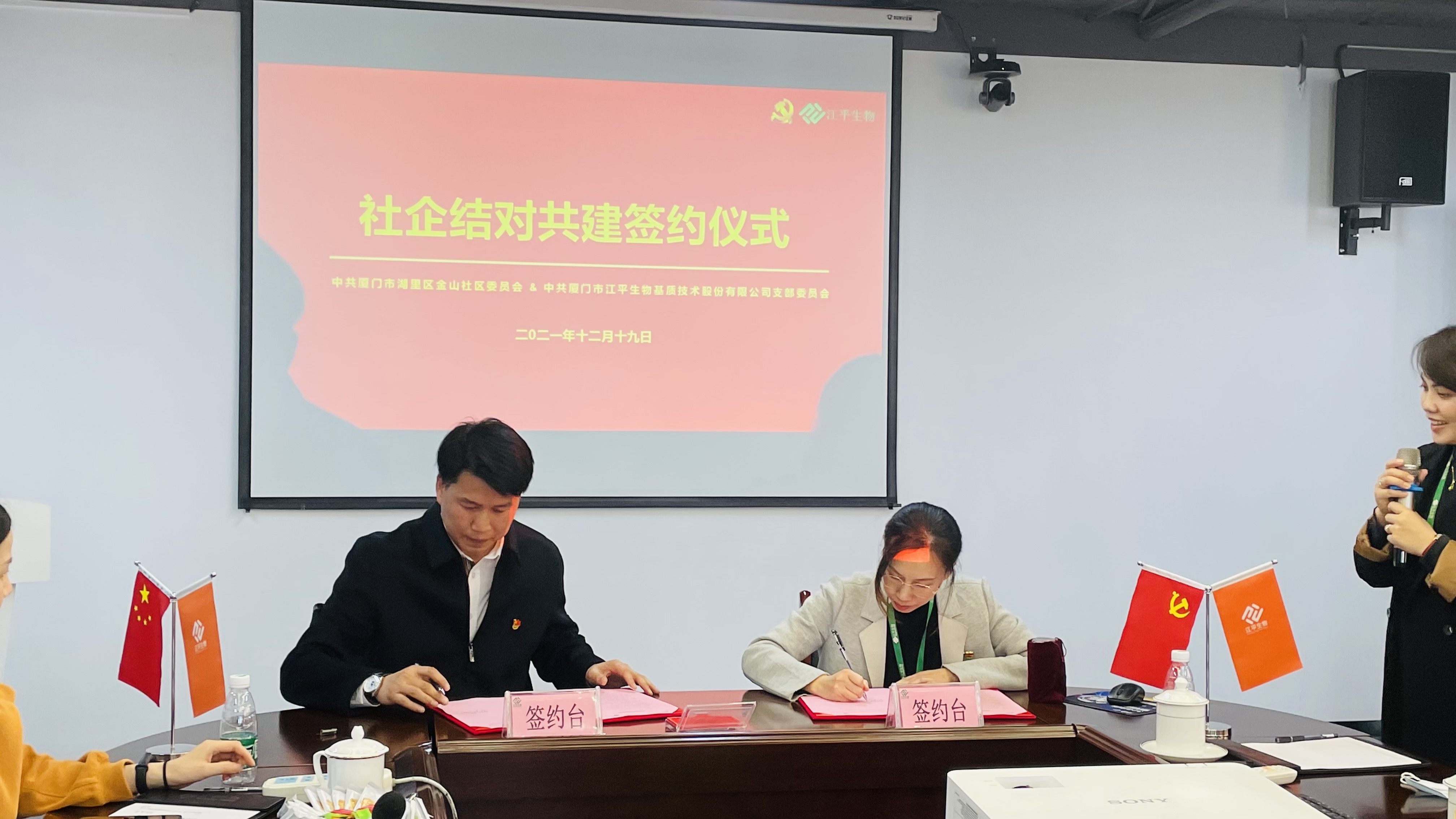 為了加強(qiáng)社企黨建工作,充分發(fā)揮黨組織的戰(zhàn)斗堡壘作用,以凝聚黨員、加強(qiáng)組織、服務(wù)群眾、促進(jìn)和諧為目標(biāo),發(fā)揮雙方黨組織的整合作用,實(shí)現(xiàn)優(yōu)勢(shì)互補(bǔ)、資源共享、共駐共建、活動(dòng)公辦,實(shí)現(xiàn)健康持續(xù)發(fā)展,12月19日,中共廈門市江平生物基質(zhì)技術(shù)股份有限公司支部委員會(huì)與中共廈門市湖里區(qū)金山社區(qū)委員會(huì)在江平生物廈門總部順利開(kāi)展黨組織結(jié)對(duì)共建簽約活動(dòng)。
