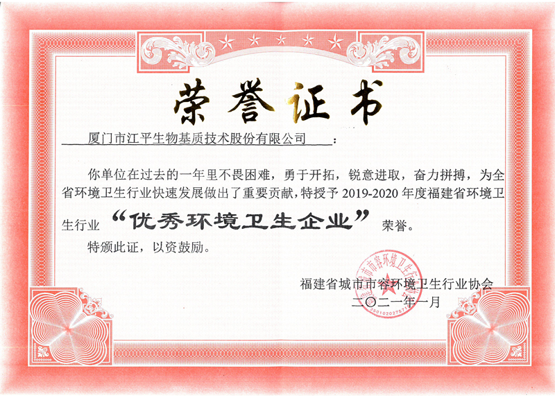 ?2019-2020年度福建省環(huán)境衛(wèi)生行業(yè)“優(yōu)秀環(huán)境衛(wèi)生企業(yè)”