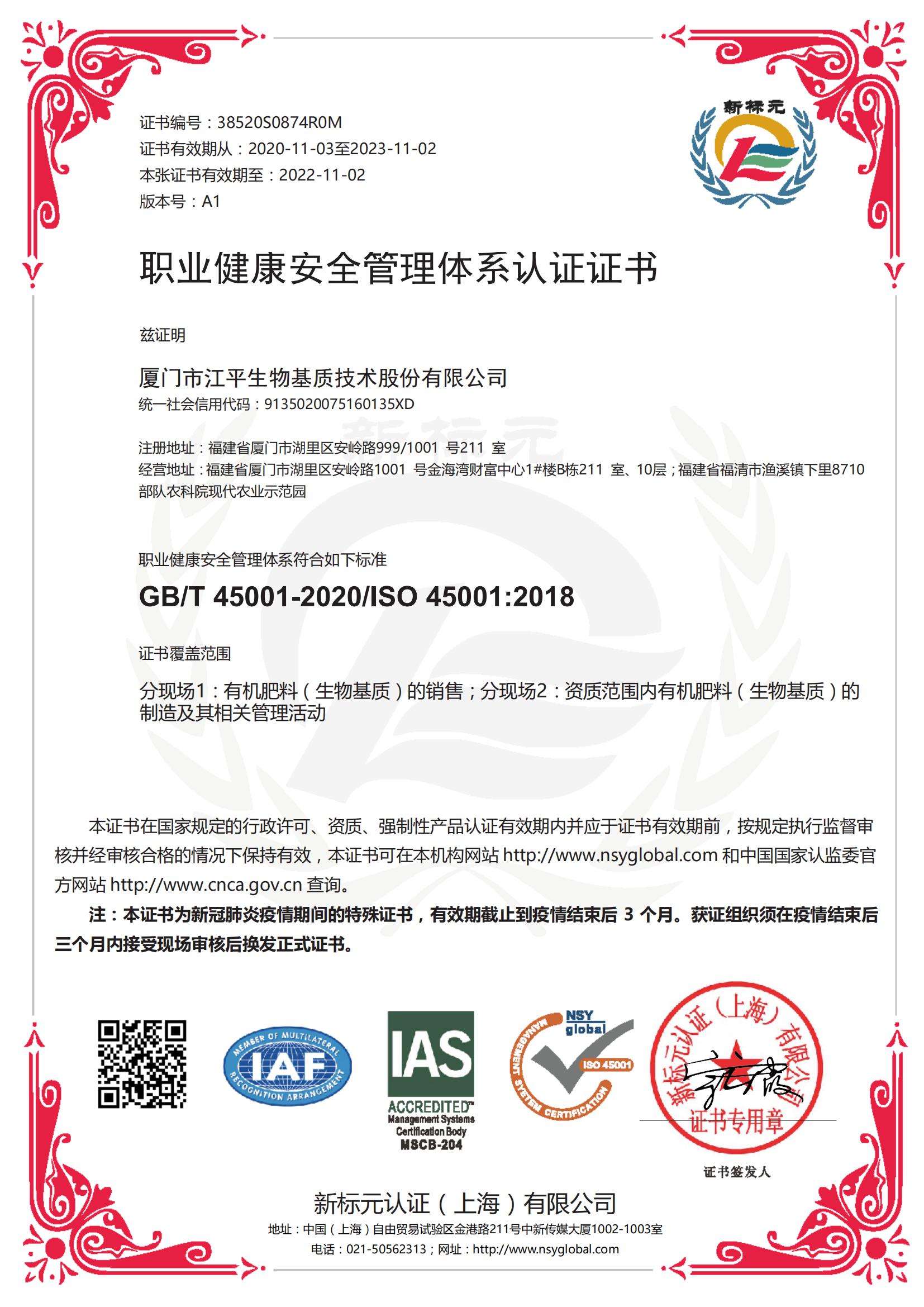 ?通過ISO 14001環(huán)境管理體系、ISO 9001質(zhì)量管理體系、ISO 45001職業(yè)健康安全管理體系認(rèn)證。