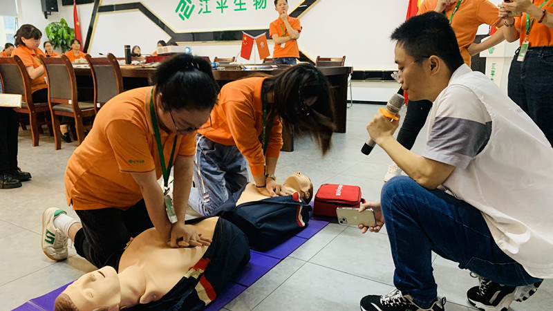 為了讓員工掌握急救知識和基本操作技能,從而提高生活應(yīng)急能力,5月12日下午,江平生物在廈門總部開展了“急救知識科普與技能”培訓(xùn)。本次培訓(xùn)特邀講師唯愛普健康與急救基地邱澤寰為公司總部員工進行現(xiàn)場授課,漳州工廠、漁溪工廠、光澤工廠、江雅工廠、種植基地員工以視頻連線方式參加。
