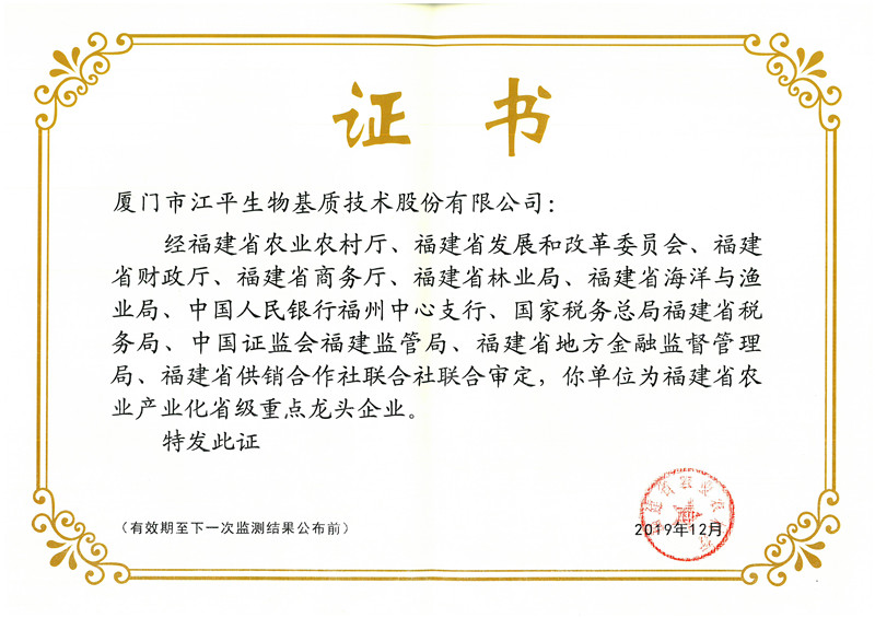 江平生物目前已獲得國家高新技術企業(yè)、工信部專精特新“小巨人”企業(yè)、福建省科技小巨人領軍企業(yè)、福建省林業(yè)產(chǎn)業(yè)化龍頭企業(yè)、農(nóng)業(yè)產(chǎn)業(yè)化重點龍頭企業(yè)、福建省知識產(chǎn)權優(yōu)勢企業(yè)、福建省及廈門市重點上市后備企業(yè)、福建省及廈門市專精特新中小企業(yè)、廈門市“三高企業(yè)”、廈門市龍頭骨干民營企業(yè)、廈門市創(chuàng)新型企業(yè)等榮譽。