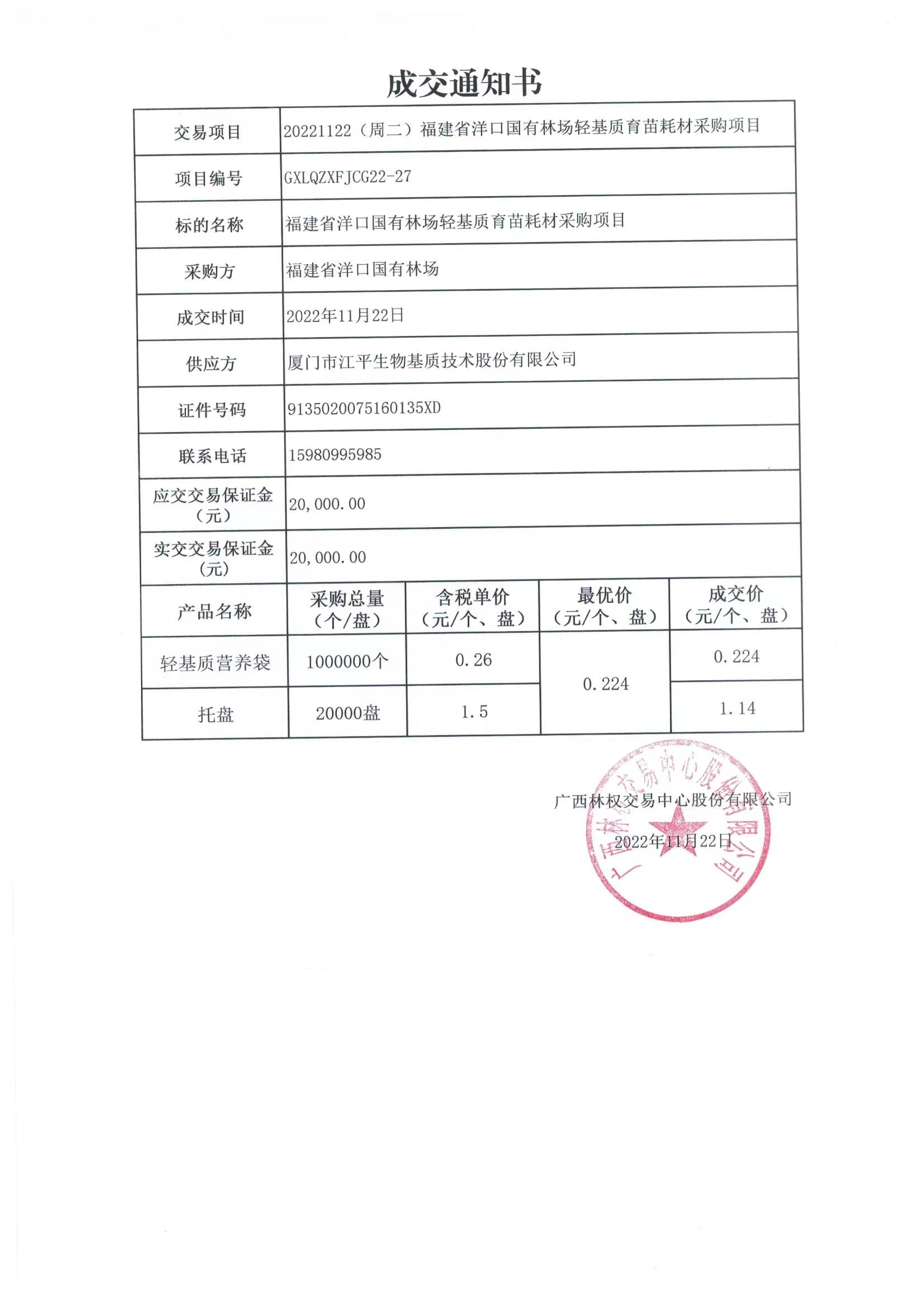 20221122(周二)福建省洋口國有林場輕基質(zhì)育苗耗材采購項目