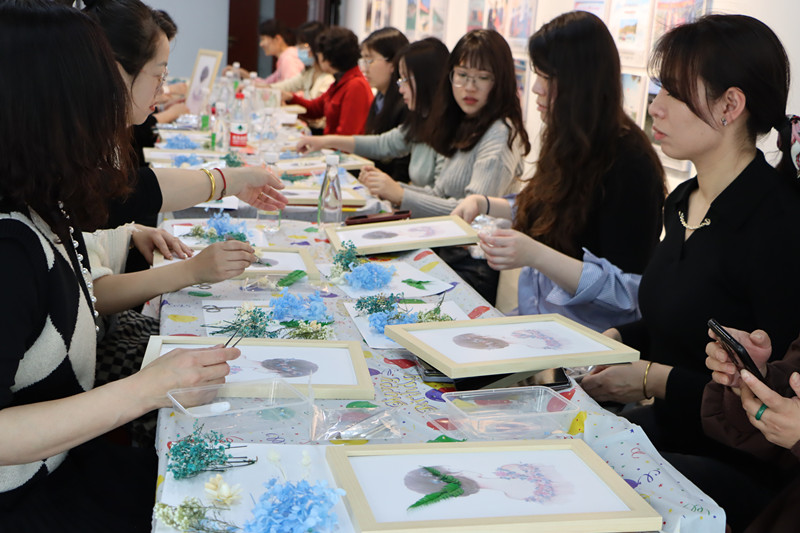 鮮花易逝,干花永存。在第一項主題活動“干花相框DIY”中,現(xiàn)場女性充分發(fā)揮想象力與動手能力,紛紛沉浸在親手制作、親手設計的時光里,將美好封存。