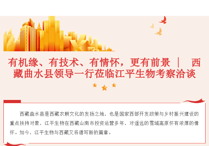 有機(jī)緣、有技術(shù)、有情懷,更有前景! 西藏曲水縣一行領(lǐng)導(dǎo)蒞臨江平生物考察洽談