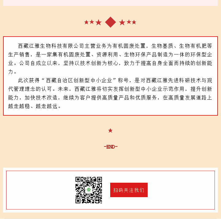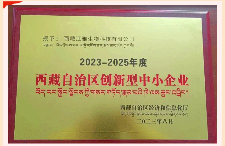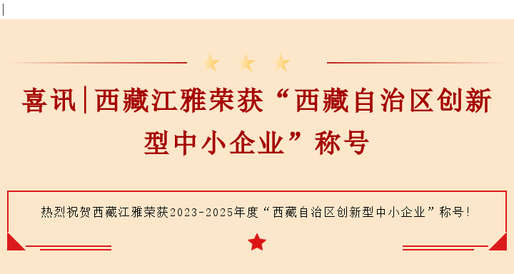 喜訊 西藏江雅榮獲“西藏自治區(qū)創(chuàng)新型中小企業(yè)”稱號