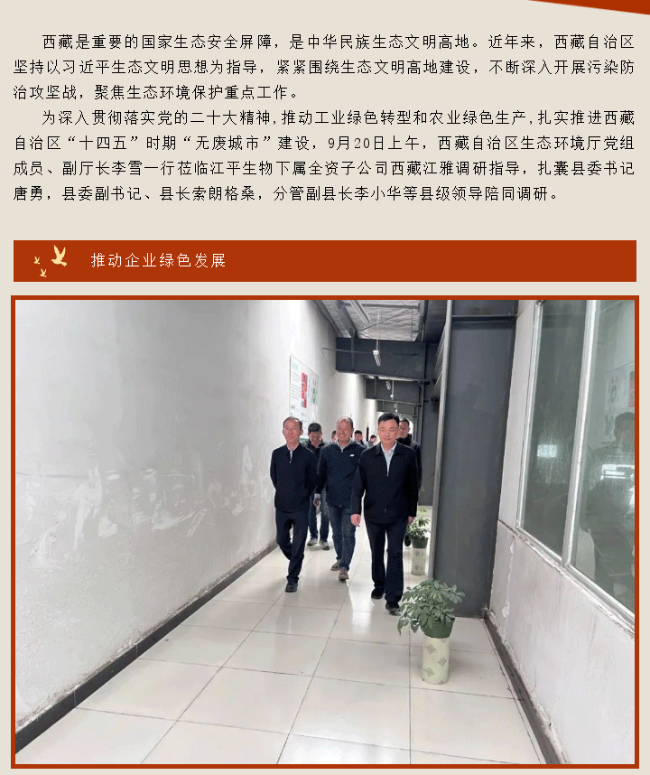 推動(dòng)企業(yè)綠色發(fā)展,助力生態(tài)文明建設(shè)-西藏自治區(qū)生態(tài)環(huán)境廳領(lǐng)導(dǎo)一行蒞臨西藏江雅調(diào)研指導(dǎo)