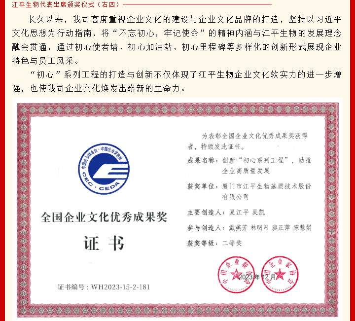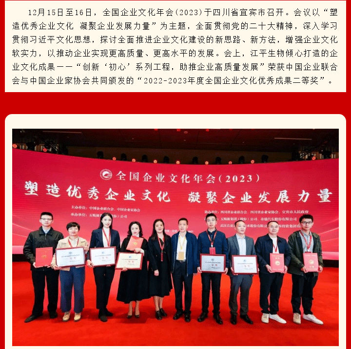 喜訊|江平生物榮獲“2022-2023年度全國企業(yè)文化優(yōu)秀成果二等獎