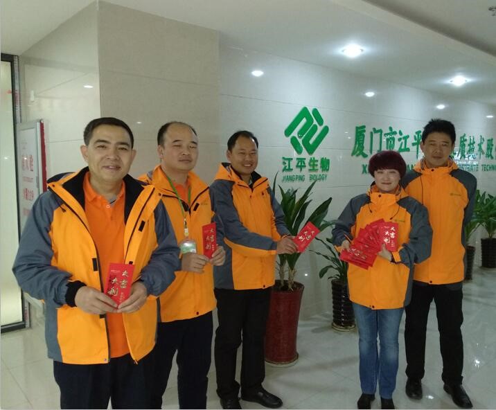 金犬紛紛滾滾來,開門迎犬納大財。2月28日,是我司正式開工的好日子,值此開春迎新之際,江平生物董事長夏江平女士攜全體員工給大家拜年了——附開門紅新詞一首: