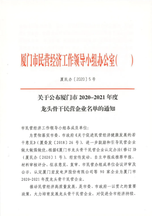 廈門市2020-2021年度龍頭骨干民營企業(yè)名單新鮮出爐,江平生物上榜!